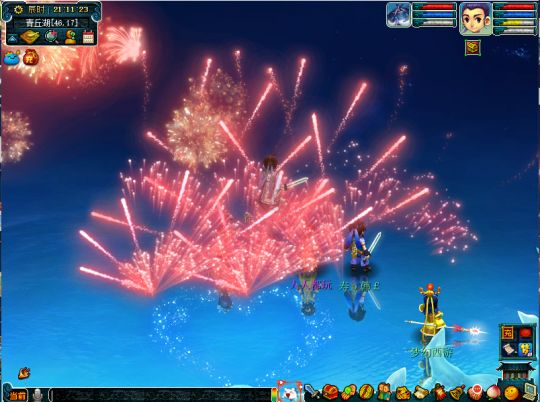 背景介绍:流萤扑闪,星火流转。青丘狐族崇拜心宿,每至月初的第七日,均会在月镜湖举办一场烟火盛典,以感恩天地星月的馈赠。此次青丘再现于世,烟火盛典也欢迎三界人士共同参加,共赏漫天火树银花。 玩法介绍:系统每月7日晚上7点-7点15分会在青丘月镜湖燃放烟花(在此期间可以于青丘向上进入月镜湖,无需通过月魅挑战)。与好友组队观赏可以获得友好度奖励。
