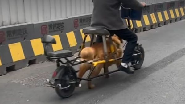 江苏一男子市区“骑狗上路”,交警回应:行为存在危险性,已批评教育