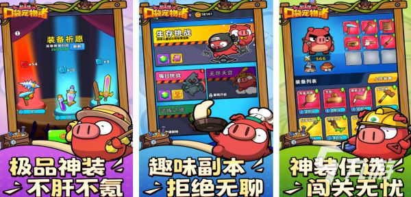 这是一款将塔防和合成相结合的游戏,游戏的主人公就是一只憨厚的红色小猪,玩家们需要操控这只小猪进行海量的关卡挑战。游戏的随机性很强,因为每一次战斗能够随机到的武器都是不一样的,并且随着战斗的推进,地图上会掉落各种零件和配饰,玩家们可以发挥自己的想象力,随机应变,将武器合成升级,而且时不时也会有随机技能等待玩家选择,选择对了武器和技能,能够抓住机会、一击制敌!