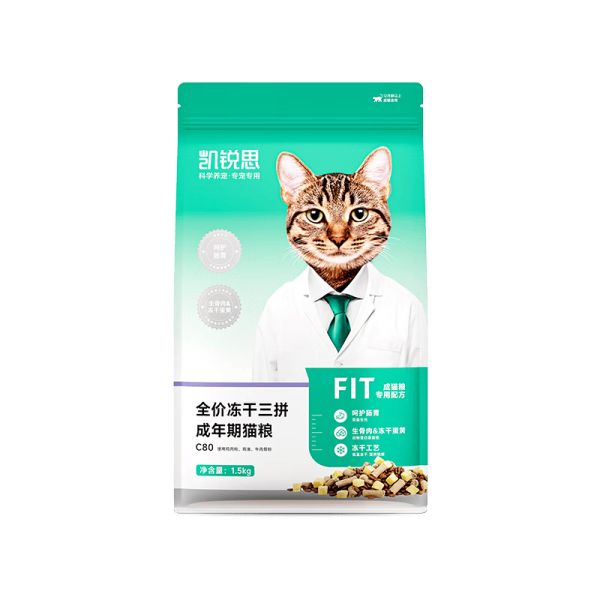 推荐商品二:凯锐思猫粮全价冻干三拼猫粮成猫粮均衡营养冻干猫粮1.5kg