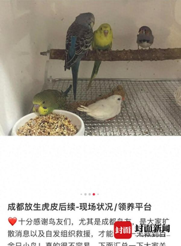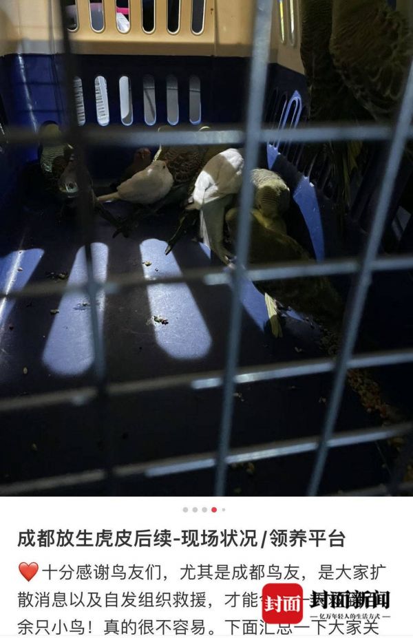 四川省生态环境观察员、成都观鸟会会长沈尤告诉记者,虎皮鹦鹉在国内并非原生种,放生野外可能会造成大量死亡。