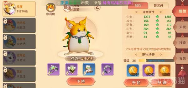 宠物系统中,建议聚焦于易得且功能明确的辅助类伙伴。追风豹可通过“黑风寨围剿”任务免费获取,自带被动技能会心一击(提升主人2%暴击率),资质洗练推荐侧重敏捷与暴击属性,技能配置撕裂(施加持续伤害)与迅捷(增加10%移动速度),非常适合刀客用于提升单体作战输出。另一只推荐宠物为签到第7天即可领取的龙猫,其生命光环可为全队提供3%最大生命值加成,资质培养以体力和防御为主,技能学习守护(降低受到伤害5%)和治愈(每秒恢复主人1%生命值),完美契合医师的续航需求。普通玩家无需追求稀有宠物,专注培养这两只即可全面覆盖PVE推图与PVP对抗场景。