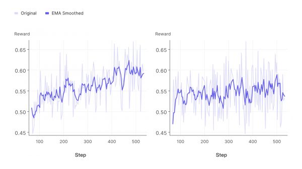 训练过程的动态指标显示,模型学习效果显著,奖励(reward)呈持续上升趋势。同时,策略熵(policy entropy)始终维持在较高水平,这表明模型在持续进行探索,有效防止了过早收敛。我们将此归因于 Web 环境天然的非平稳性,该特性促进了稳健自适应策略的形成,也因此无需再进行显式的熵正则化。