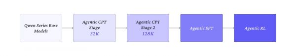 我们对 Agent model 训练流程进行革新!从 Agentic CPT 到 SFT 再到 Agentic RL,打通整个链路,引领新时代下 Agent model 训练的新范式。