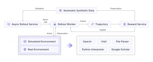 训练这样的Agent模型需要重新思考整个模型训练流程,从预训练到微调再到强化学习。我们建立了一种新的代理模型训练范式,将Agentic CPT → Agentic SFT → Agentic RL 连接起来,为 AI Agent创建了一个无缝的端到端训练循环。以下是我们利用强化学习解决最后阶段的方法,这对于使代理的行为与高阶目标保持一致至关重要。