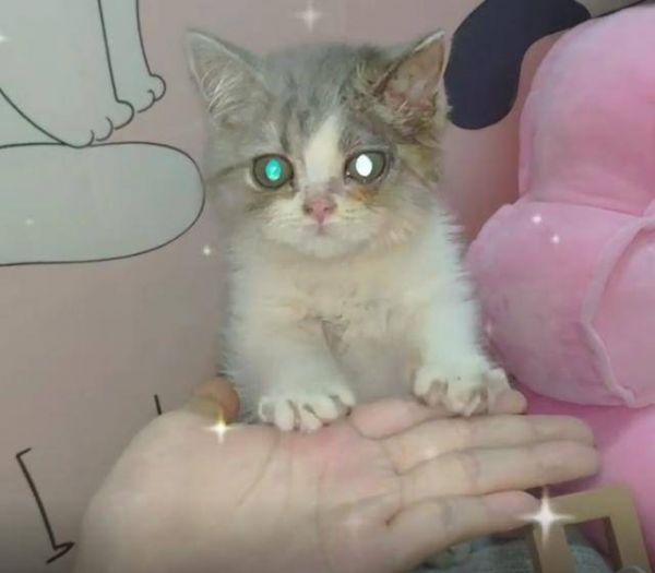 笔者仔细看了看这只小猫,发现它是一只三花色的英国短毛猫,小猫被抛弃的原因也很简单,猫舍繁育小猫后,因为照顾不周,让小猫得了猫藓和眼疾,原主人怕传染给其他小猫,因此将小猫狠心抛弃,随后被铲屎官捡到了。