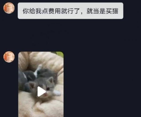6月初,有人直接找到铲屎官,说他是小猫的原主人,并让铲屎官付猫咪的费用,随后这位“原主人”还发来了小猫刚出生时的视频,铲屎官经过辨认后,确认此人就是小猫的原主人。