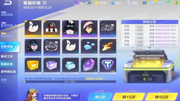在2025.12.11-2026.2.23期间可通过点券寻宝-紫晶补给获取。