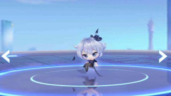 进入成长体后,幽蓝行影的体型逐渐舒展。头顶的小礼帽垂落一层质感黑纱,利落的短衫勾勒身形,下装则以裤裙巧思设计,将柔美与不羁悄然糅合,更添几分神秘气息。
