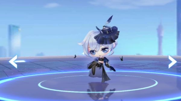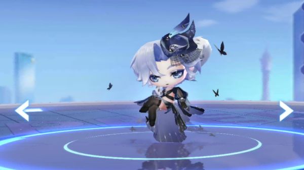 幽蓝行影一共有三个形态。幼体时,它头戴一顶精巧的小礼帽,身着如夜色织就的小黑裙,周身有黑蝴蝶萦绕翩跹,无声地散发着神秘优雅的气息。