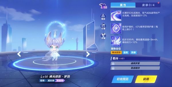 二技能适合道具模式,领跑宠物之一,在道具领跑时要面对被对面频繁的道具攻击,这个时候护盾可以抵抗,拂光掠影·梦羽使用护盾有概率再次获得护盾,可以通过触发技能获得的护盾进行连续防御,可以更稳定的领跑,一局上限获得5个护盾。