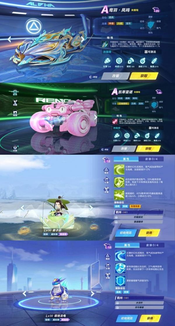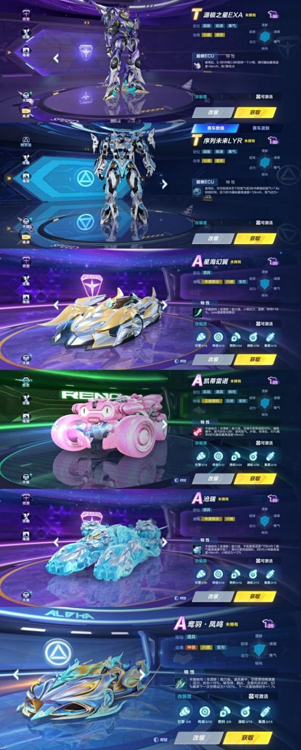 A级赛车:星海幻翼、凯蒂雷诺、沧瑞、鸾羽·凤鸣。