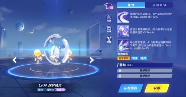 完全体满级一技能:比赛时幻化成尾挂,氮气或加速带时产生拖尾,加速度提升12%。