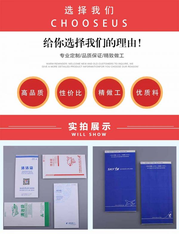 呕吐袋,宠物粪便淋膜纸袋价格,顾名思义就是用于缓解恶心、干呕和吐逆的袋子。它是一种非常实用的生活用品,萍乡宠物粪便淋膜纸袋,尤其在公共场所如飞机机舱或医院等地方经常被使用到以保障个人卫生和社会健康。[解释优点]