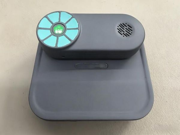 在位于中国(南京)软件谷的“质能・工坊”OPC社区420室,这间不足10平方米的办公室里,记者见到了南京真来视智能科技有限公司联合创始人、COO潘小琪。他正专注于笔记本电脑前,整理一份借助AI工具整理的海外市场分析报告,旁侧摆放的就是宠物智能定位器2.0版本样机,灰色机身闪烁着柔和绿光;桌上整齐陈列的证书奖杯,记录着两个月前真来视获得OPC微种子基金100万元扶持的荣誉。