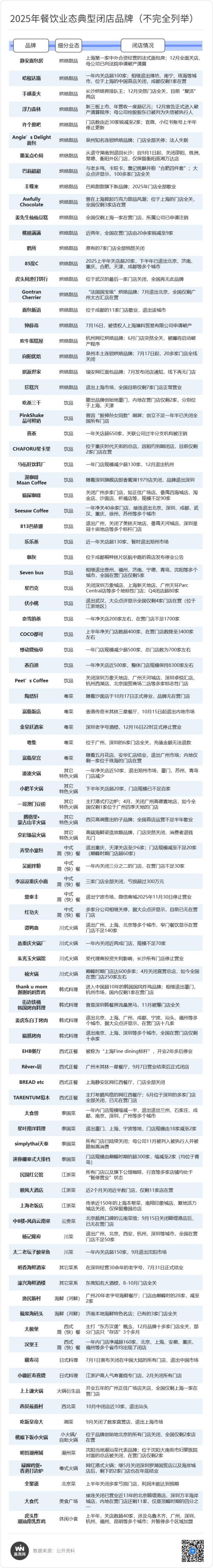 与此同时,餐饮行业迎来2007年以来第四轮上市热潮,蜜雪冰城、遇见小面、霸王茶姬等十余家品牌2025年内齐齐成功敲钟,撑起“餐饮IPO年”;但在资本盛宴的另一面,闭店潮同步蔓延。据赢商网不完全统计,2025年超90家餐饮连锁品牌出现关店动作,几乎个个都曾是“排队王”。