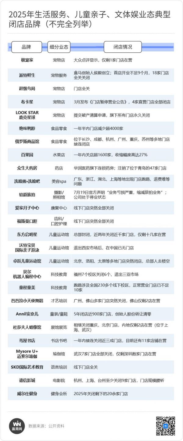 随着“重扩张、轻管理”的后遗症逐渐显现,叠加预付式消费模式本身的脆弱性,这一困境在文体娱、儿童亲子、生活服务等赛道集中爆发。据本次统计,因上述问题导致密集关店甚至全面撤店的品牌占比超八成,其中以培训机构、宠物店最为典型。