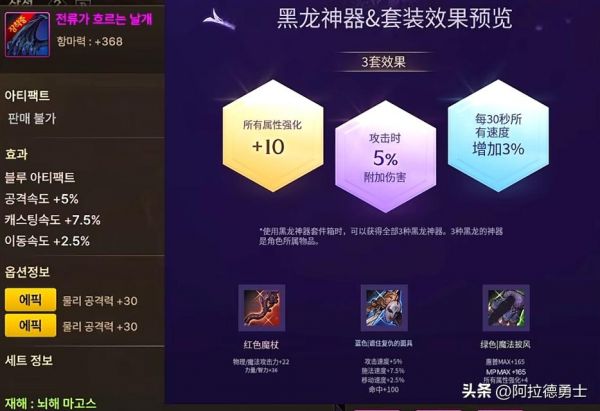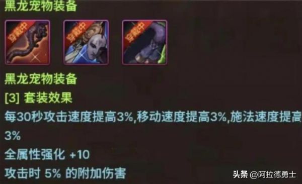 参考隔壁服的版本更新进度来看,下一个团本很可能就是黑龙了,而黑龙团本到来后,这黑龙宠物装备也是会一同到来的。这套黑龙宠物装备的套装属性也是很强的,可以增加10点全属性强化和5%的附加攻击力,最重要的是这宠物装备的效果是全图生效的,不局限于团本。