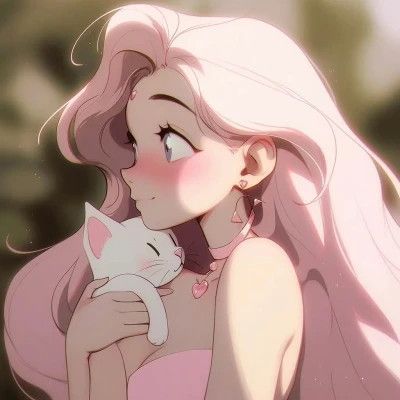 粉色系抱猫动漫少女心头像图片 2025-01-18 181