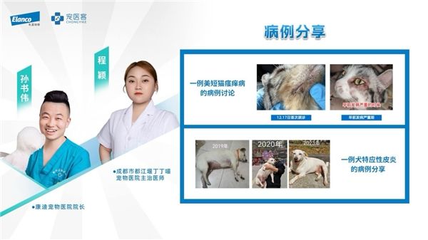 此外,在圆桌讨论和病例分享环节, 专家们围绕瘙痒性皮肤病认知、确诊和宠主教育等议题展开深入讨论,并邀请两位青年医师——郑州康迪宠物医院院长孙书伟医师、成都市都江堰丁丁喵宠物医院主治医师程颖医师,现场连线,针对真实案例,提供了专业的解决方案。