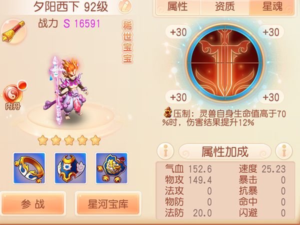 星魂考虑的是压制。因为基本站不住几回合等顺斩几率还不如压制效率高,而且压制提高伤害更容易出发晕。