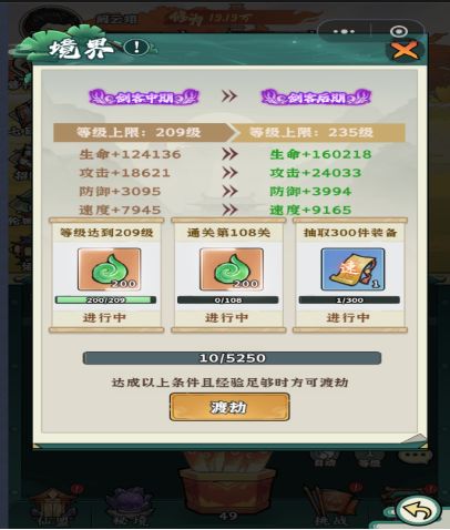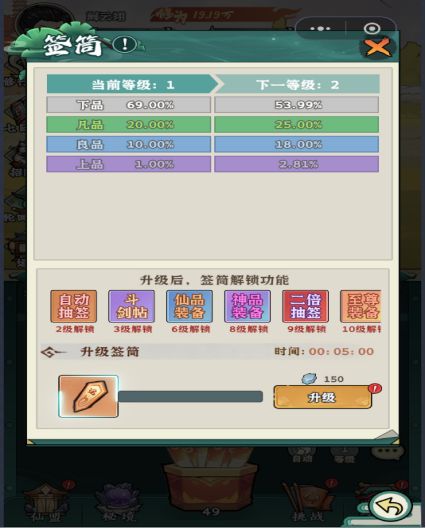装备获取的等级和自己的修为等级挂钩,装备的品质与签筒的等级相关,所以我们前期需要尽可能的提升签筒等级,并且进行抽签提升等级。