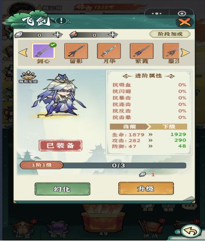 飞剑可以提升高额的抗性加成,飞剑强化等级是共用的,前期可以直接开始强化飞剑,后期直接更换