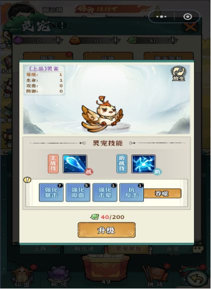 上阵灵宠可以给玩家本身加成大量的属性,还提供一个额外技能,极大的提高作战能力