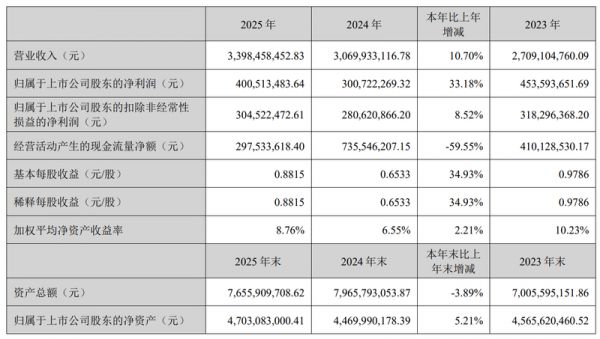瑞普生物实现营收、归母净利润“双增长”。3月底,瑞普生物发布年报,2025年实现营收33.98亿元,较上年同期增长10.7%;归母净利润4.01亿元,较上年同期增长33.18%;扣非净利润3.05亿元,较上年同期增长8.52%。