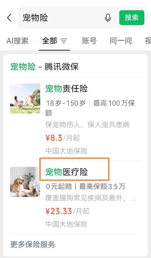微信直接搜索“宠物险”;