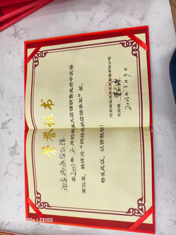 此外,医院的医生还获得了众多专业证书,如刘景峰医生获得硕腾高阶学苑猫学科结课证书、硕腾高阶学苑小动物骨科结课证书等;冯奇斌医生获得勃林格大学 - 猫内科结课证书。这充分体现了医院医生的专业水平。