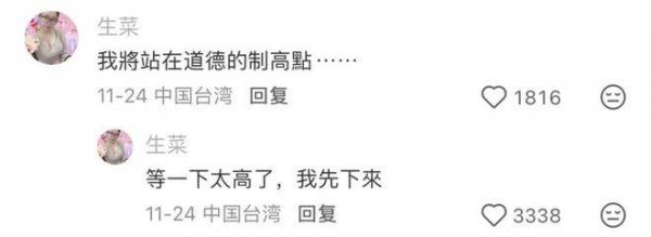 就在大家以为这场闹剧该收场的时候,又有人想站在道德制高点指责姑娘草率,结果这人自己先怂了:“我要站在道德制高点……等等太高了,我先下来!”