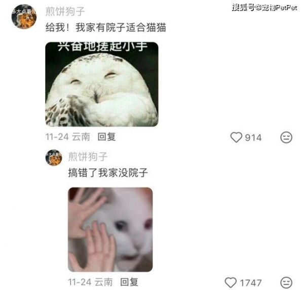 “给我!我家有院子,特别适合养猫!”众人还没来得及点赞,这哥们自己又补了一刀:“啊搞错了,我家没院子。”