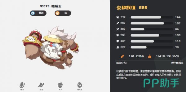 第二只推荐宠物为双属性组合代表——瞌睡王(普通/武系)。其初始形态为白发懒人,需先于维苏威火山口捕获,再完成进化方可获得。特性【慢热】具有能量累积机制:当己方其他宠物成功闪避、格挡或命中敌方时,瞌睡王自动获得5点能量;随战斗推进,能量持续叠加,显著强化后期输出潜力,属于典型的“越战越强”型战术核心。