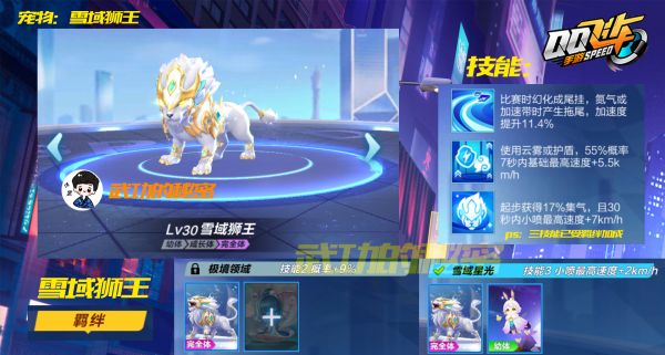 雪域狮王这只宠物可以说是荣耀勋章中最保值的一只。开局的集气效果使得第1个弯道可以更好的获得第一个氮气。而星梦精灵上线之后给雪域狮王增加的三技能羁绊使得这只宠物有渐渐压过申公豹的局面。国服中的身影越来越多,而实战中的表现也越来越强大。这只短图神宠相信很多小伙伴们都有了。