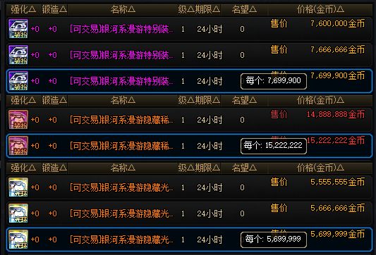 以上就是本次五一版本开服大致各种物价行情了,如“隐藏宠物”“75智力宝珠”等还是比较贵的,毕竟可以带来直接提升;而像时装、天空套、增幅券之类道具,几乎全都降价了,大家可以蹲一波拍卖行看看有没有自己需要的哈!