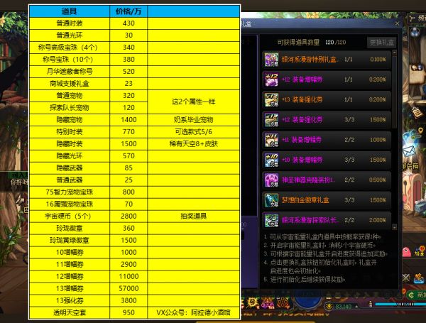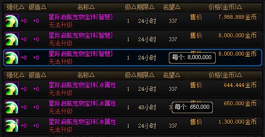 【12】隐藏武器,85万!只有男女魔法师可佩戴,但特别推荐,女魔法的月球、男魔法的黑洞都比较炫酷!【13】宠物宝珠75智力,800万,今年最好的奶系宠物附魔,不过这个价格也真不低呀!【14】宠物宝珠16冰属强,70万!输出职业可以趁此机会换一下宠物宝珠。