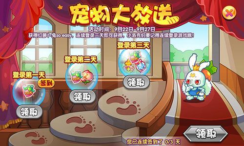从今天开始(9月22日)即可签到,累积签到三天即可获得“红萝卜兔so easy”宠物,看到这里是不是有点小激动呢?