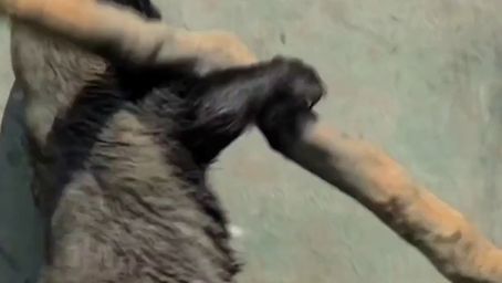 蜜獾贝姬练习它的攀爬技巧,它的求胜心促使它爬得过高