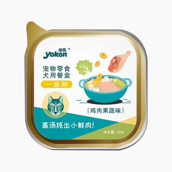 怡亲Yoken 狗狗零食鸡肉果蔬亮毛配方狗罐头餐盒 100g