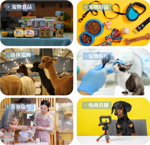 宠物周边,涵盖宠物潮玩、宠物摄影、宠物培训、宠物艺术、宠物直播、宠物丧葬、宠物学校等