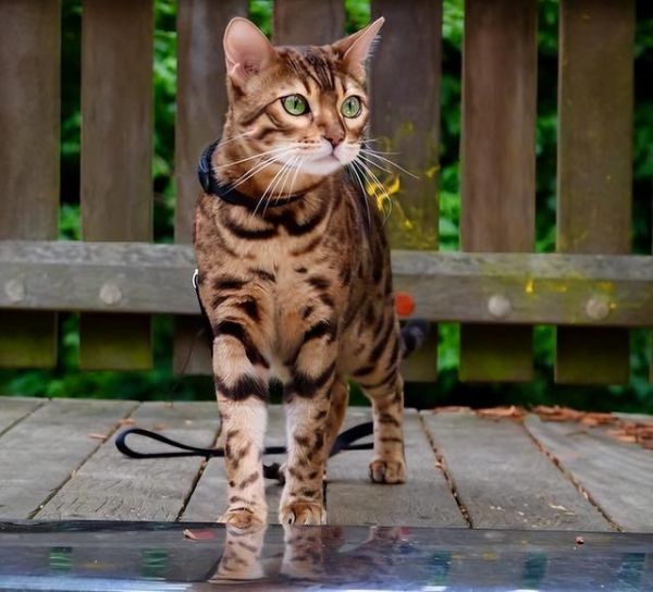 如果不想豹猫太调皮的话,那么建议你在在家设置一个猫爬架给它,平时带它出门释放活力~