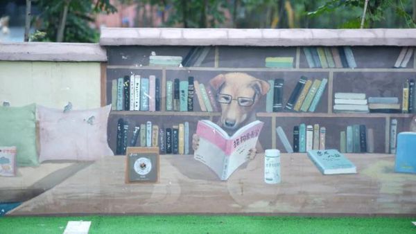 雄鹰基地坐落在天兴桥村一座小山山腰,距离西充县县城大约11公里,驾车越接近目的地,路上的人和车也逐渐消失,两边都是茫茫青翠,是山上的树木和山下的农田。爬上盘山公路,拐了几个大弯来到基地入口,公路的水泥地面、道旁的石墙上出现了五颜六色的动物彩绘,就像进入幼儿园一样温馨可爱。