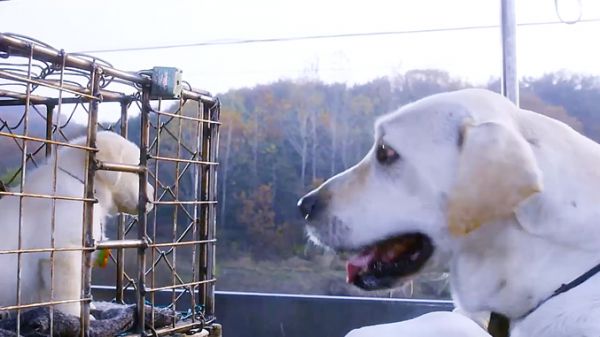 这条狗跟主人分别,它不舍离开满眼泪水,在它眼中主人是它的全部