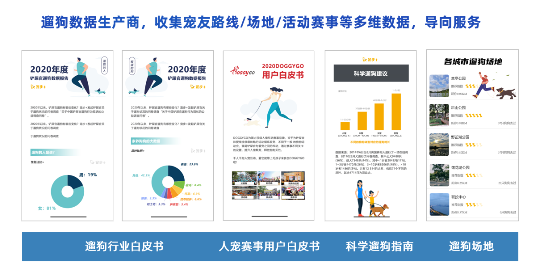2020年上线的宠步+小程序,集“IP+内容+互联网应用”为一体的完整生态链,也成功的通过“硬件+软件+服务”的形式打造了一个个宠物友好型商圈、宠物友好型社区。
