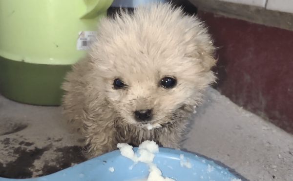 见到这只小土狗一脸可怜兮兮的模样,小哥心中不由也是同情心暴涨,因此,小哥很快就决定,要赶快将这只小土狗带回去。只是,当小哥把小土狗带回家之后,却发现,这只小土狗的年龄实在太小了,甚至可能连牙齿都还没长齐。不过,考虑到小土狗已经被饿得不行了,小哥还是决定,先拿一些吃的,看看它是否会自主进食。因为,小哥家用来喂养小奶狗的奶瓶,在不久前被另一只小奶狗咬坏了,因此,小哥也只能泡了一些羊奶粉以及一些米饭,先喂给这只小土狗吃。