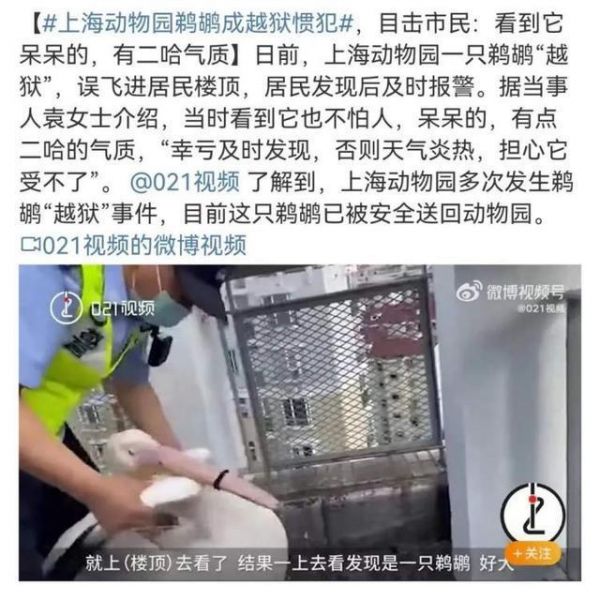 最近,就有一只鹈鹕飞到了居民楼顶,可能因为楼顶天台有较高护栏遮挡,不利于它起飞,所以飞不回来了。居民报警后,鹈鹕被相关部门送回动物园。几年前,鹈鹕也曾飞到虹桥机场附近的水塘。