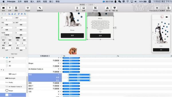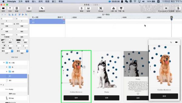 4、【选择】2哈组至合适的位置,【选择】2哈和金毛,按【Ctrl+G】编组,调整组框至画板大小,垂直动态【页面】。具体显示如图示。