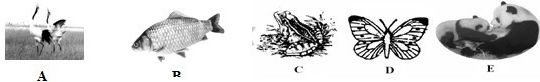 (7)上图所示的五种动物中属于我国一级保护的动物有E大熊猫和