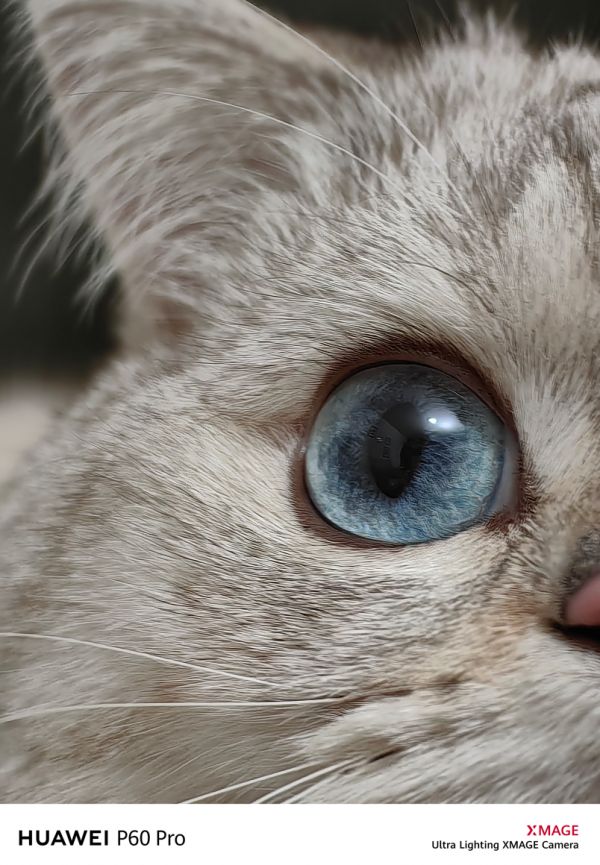 就拿华为P60 Pro拍摄上面这个画面来说,猫咪的眼睛与毛发清晰可见,淡蓝色眼睛如一汪清泉令人赏心悦目,很难让人相信这是通过长焦微距拍摄出的画面。这主要得益于华为在长焦镜头方面取得的重大突破,微距模式在远距离不打扰动物的情况下也可以实现更好的成像效果,更方便当代年轻人随时记录猫咪的状态,成像效果远好于主流友商。